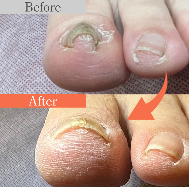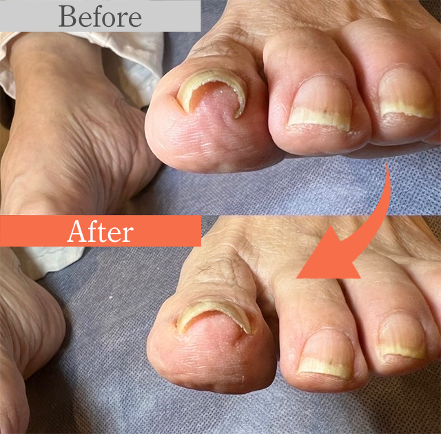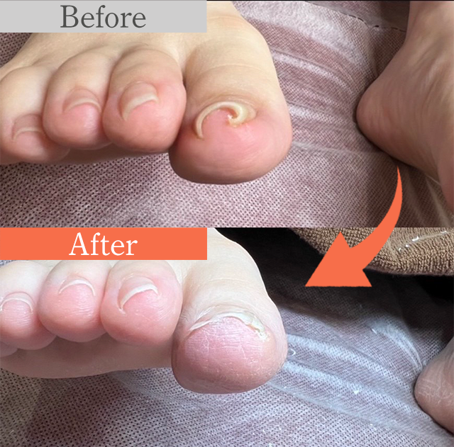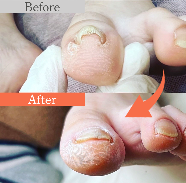 この原因を取り除かなければ、爪の形を整えたり履く靴を変えてみたりして改善した場合でも、スグに再発をしてしまいます。